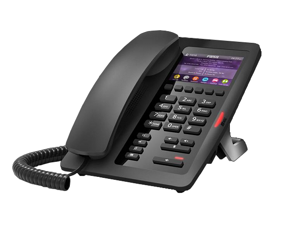 Fanvil H5 — это высококачественный гостиничный SIP-телефон с простым понятным интерфейсом и поддержкой PoE. Устройство соответствует международным стандартам и обладает полным набором необходимых функций. Старшая модель линейки оснащена 6 программируемыми кнопками и 3,5' LCD-экраном, на который заносятся установленные на каждую из кнопок действия без использования бумажных носителей. Поддержка нескольких языков в таком случае важна для международных отелей. Модель оснащена USB-портом для зарядки мобильных телефонов и других устройств. Все это делает Fanvil H5 идеальным решением для гостиниц высокого класса и для номеров класса Lux в любых отелях.