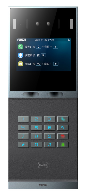 Fanvil i66 — это домофон в новом дизайне с распознаванием лиц, полной клавиатурой (16 клавиш), большим дисплеем, камерой 2 Мп и считывателем RFID. Конструкция изделия выполнена из цельноалюминиевого сплава со степенью ударопрочности IK07.