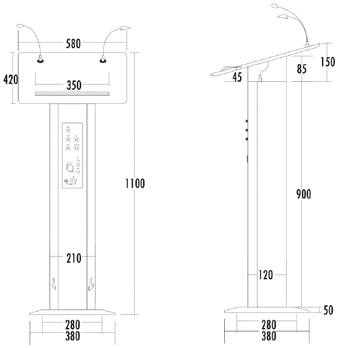 ITC T-6236 - Многофункциональная трибуна  кафедра , встроенный усилитель RMS 60 Вт, колонка 60 Вт, 1 светодиодная лампа, 1 микрофон на гибкой стойке, вход для внешнего микрофона, дополнительный вход, дополнительный усилитель и вход для дополнительного динамика, черный или белый на выбор<br />